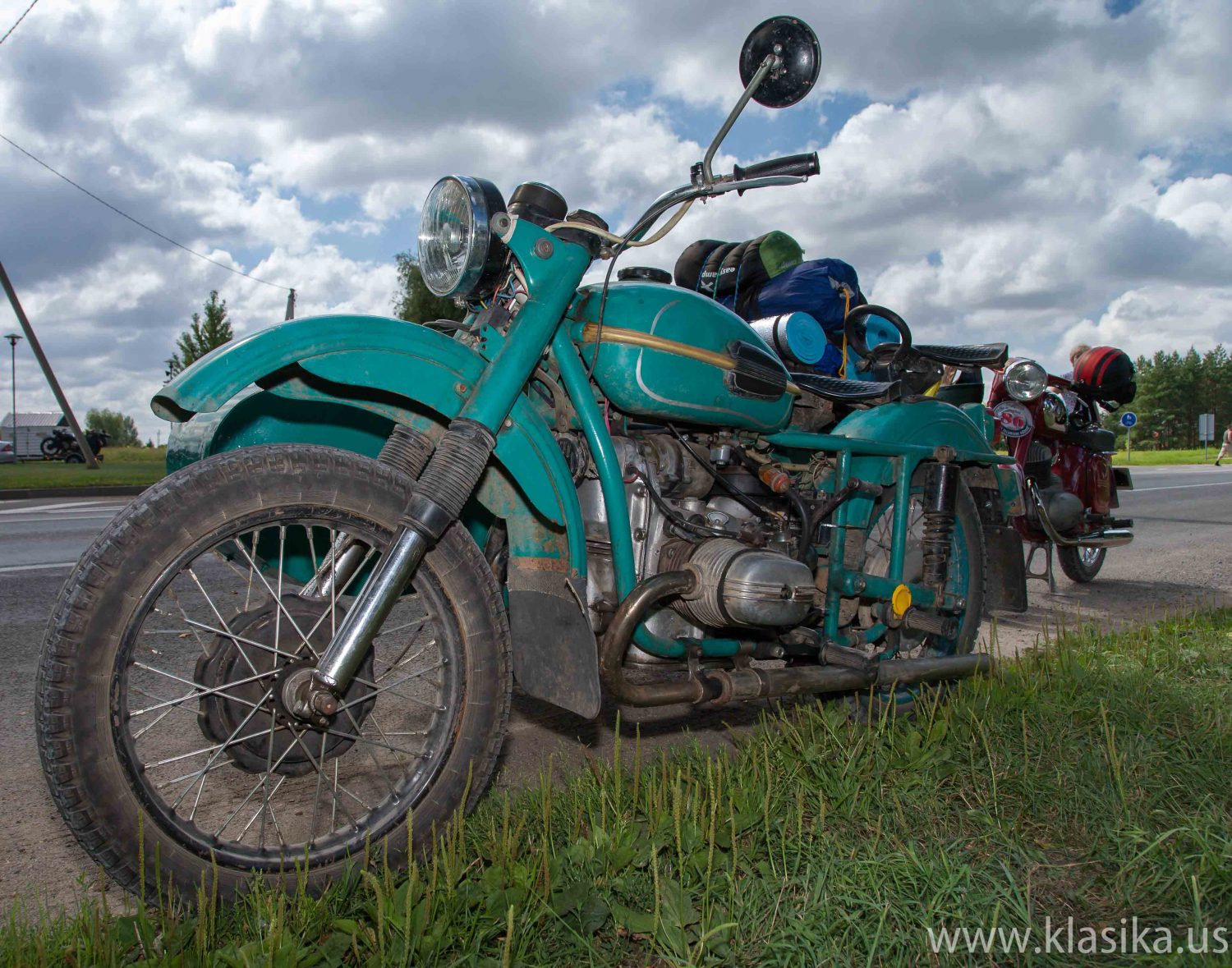 After the exhibition, the column of antique vehicles turned from Biržai Airclub towards Vinkšniniai village where a private party was held in Alė Podėnienė farmstead to honour the participants and the club “Klasika” five-year birthday commemoration. After dinner and tasting Biržai beer and kvass, the participants were awarded with diplomas and memorable gifts. Dainius Petrulis arrived by the oldest motorcycle in the exhibition Douglas EW350, made in 1926. Alfreds Zamockis won the award of the oldest car with Oldsmobile 30A, 1923. The most interesting car was found Gintautas Miškinis’ Packard 333 Limousine, made in 1925. Juris Gagainis’ crew, arrived in Willys MB, 1943, was elected as the most stylish and adequate vehicle time crew. Algirdas Bušauskas with VW Kaefer, 1970, and Gintaras Maksimavičius with Moskvich 408, 1966, from Vilkaviškis earned awards as the visitors who came the farthest.