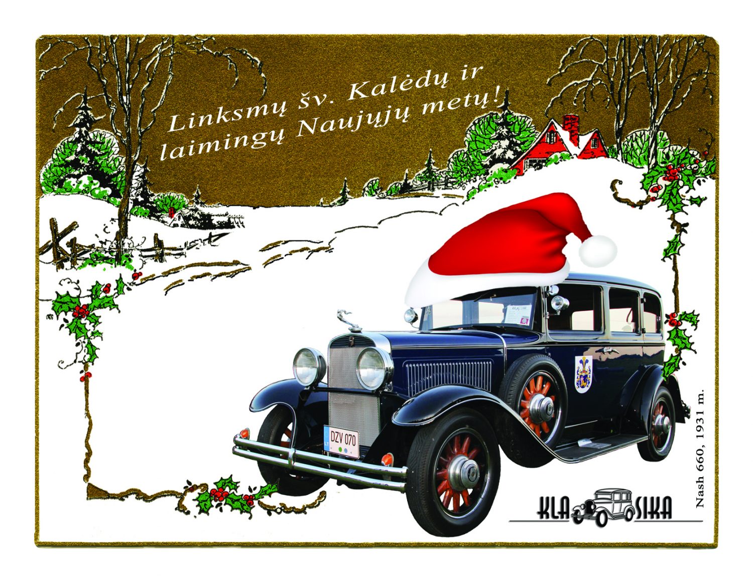 It is said that the traditions and customs we create ourselves … I think that it has been well proved by from the “Klasika” Christmas cards which have been published since 2009. The very first start of the “Klasika” card (2009) and the green car was invented by professional designers. Artist Ligita Jasenauskiene colored to a club a playful Christmas a snowman. Following, 2011 Christmas was decorated by Ona Bričkutė’s cozy cottage with an oldish car. Well, 2012 holidays were met with Joris Malūkas’ Santa Claus. Later, from 2013, we started to publish a collection of Christmas cards which depicted club members cars.