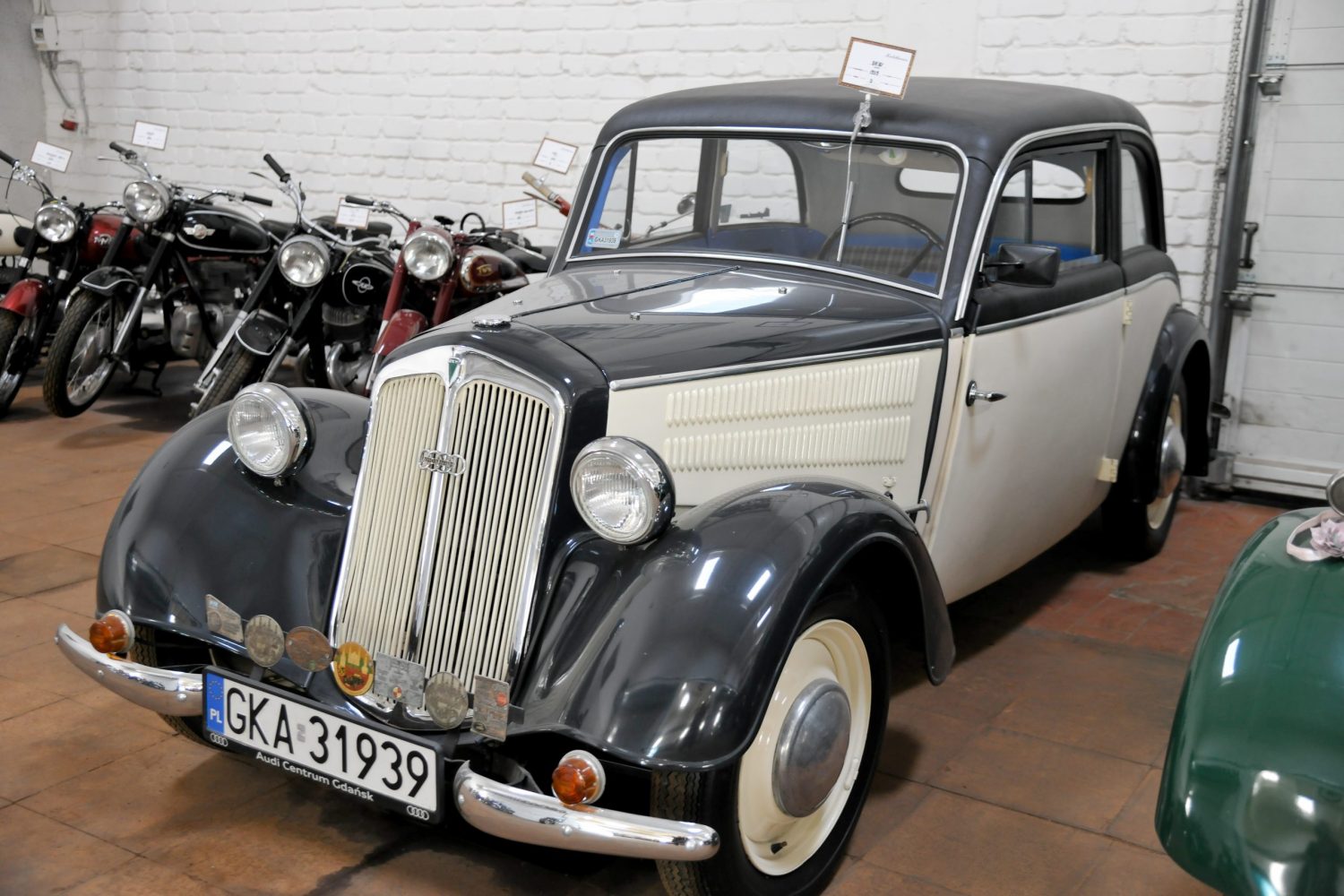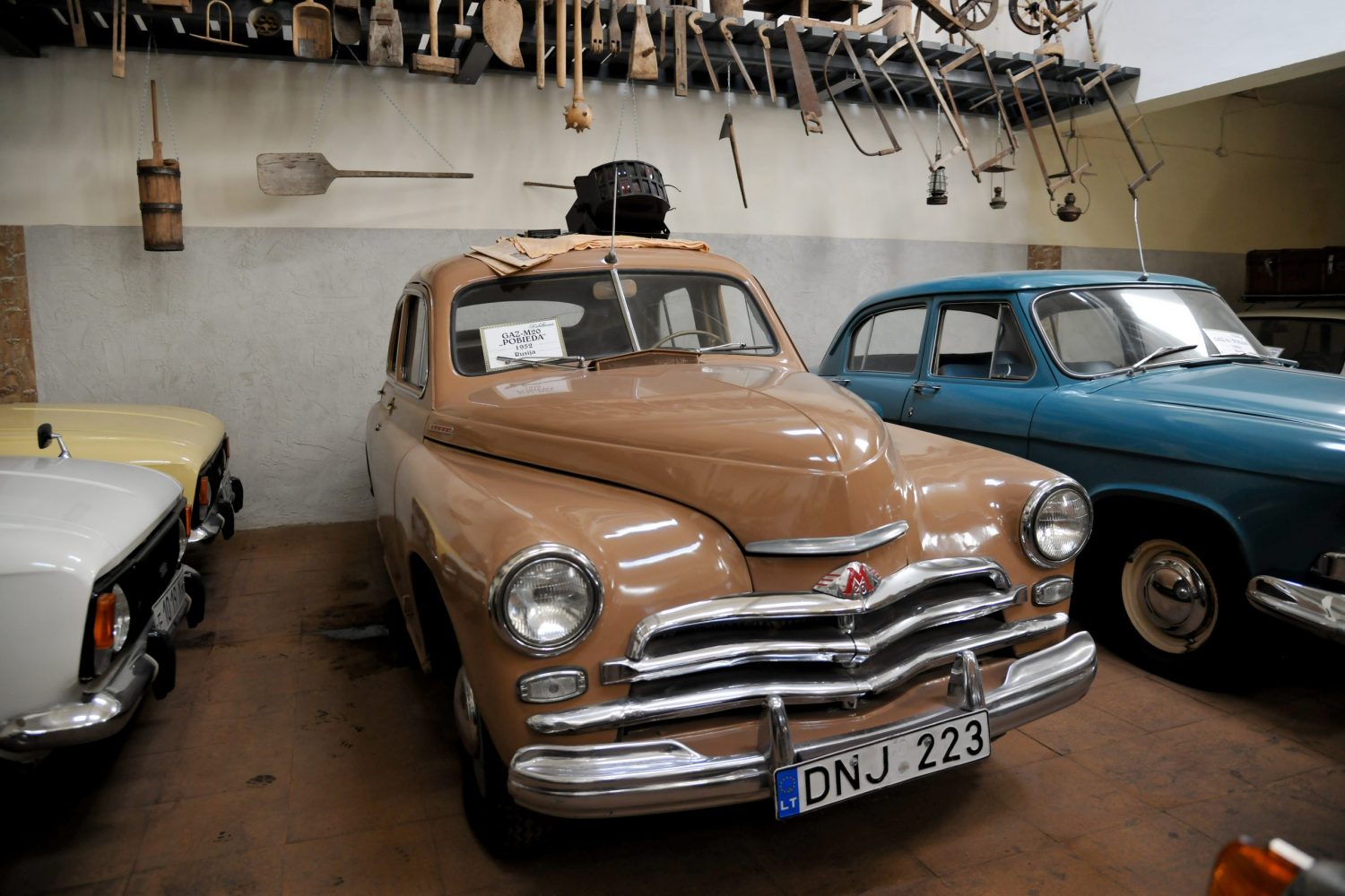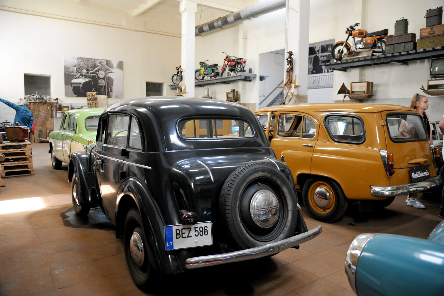 On beautiful Saturday morning of 30 May, the members of the Antique Automobile Club Klasika started their second trip in their vintage cars. This time they chose Marijampolė and Vilkaviškis districts. In Kaunas, when several friends from the Antique Cars Association Old Buckets joined the Klasika’s company, a column of eleven vintage cars hit the road. After reaching Marijampolė, the antique cars first visited the so-called “Kubilkiemis” museum. Mr Kęstutis Kubilius, the owner of this museum, welcomed the travellers at the door of the spacious building of the museum and showed its rich and interesting collections of vintage cars, motorcycles, trucks and other antiques. An unexpected surprise was presented to the museum by the Old Carriage Club from Vilkaviškis. Several members of this club not only came to an unplanned meeting with the Klasika Club members, but also sang their club anthem at the accordion of the club president Mr Petras Žilionis!