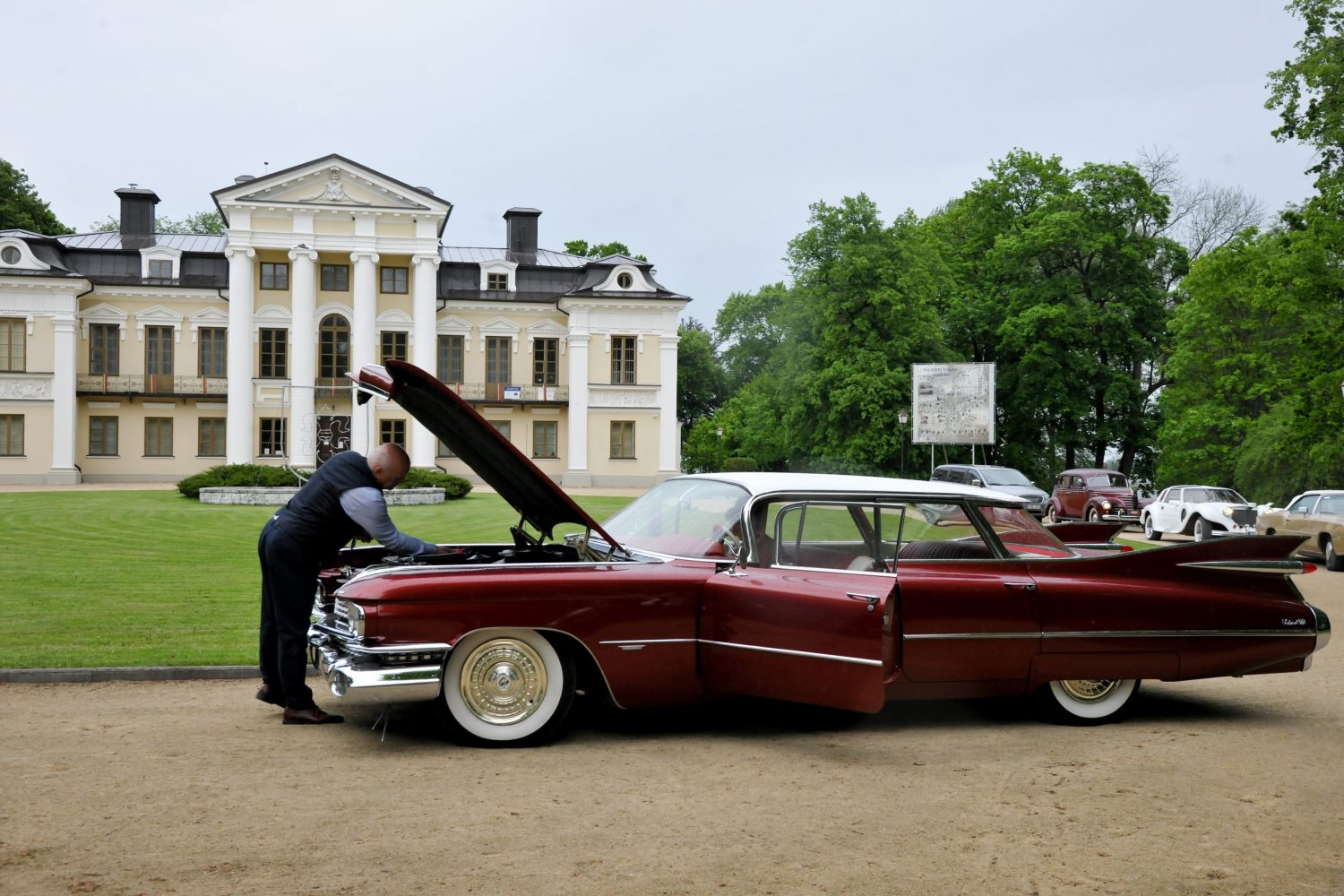 After lunch, the members of Klasika Club said goodbye to Marijampolė, which had welcomed them so warmly, and turned towards the last destination of the trip – Paežeriai Manor. The manor, which is very popular and loved by tourists, is named as the pearl of Suvalkija. After entering the manor and parking their cars, the travellers not only admired the beautiful architectural monument, walked around the park, hugged the old oak of the manor and saw the manor arts, but also climbed its high tower. Having taken memorable pictures and thanked the manager of Paežeriai Manor for the hospitable reception, the travellers headed home in the evening.